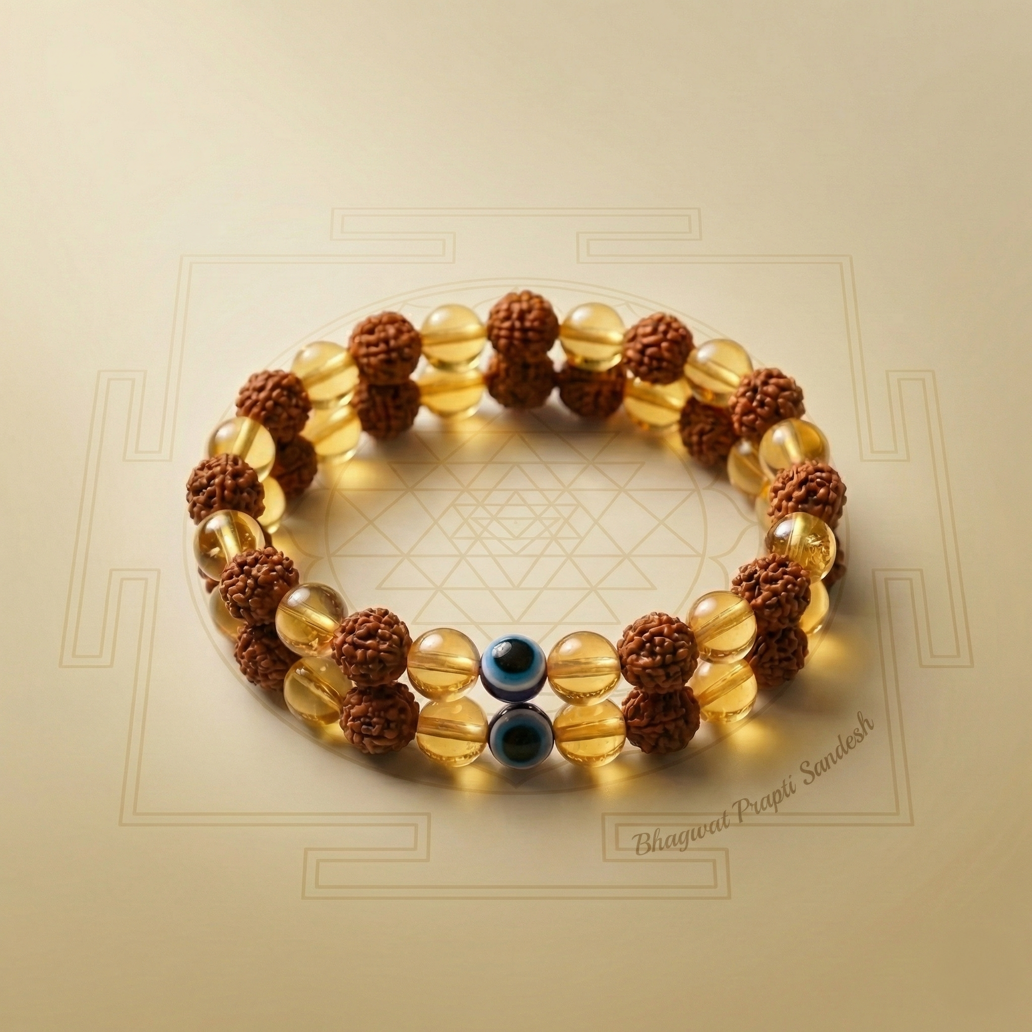 Rudraksha Citrine Crystal Healing Bracelet – Positivity, Prosperity & Protection ✨