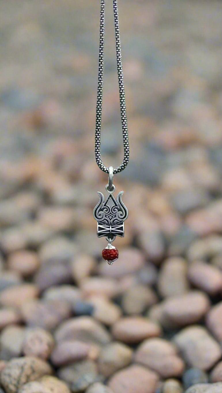 Trishul Damru Rudraksha Pendant Chain โ Divine Power in Every Step