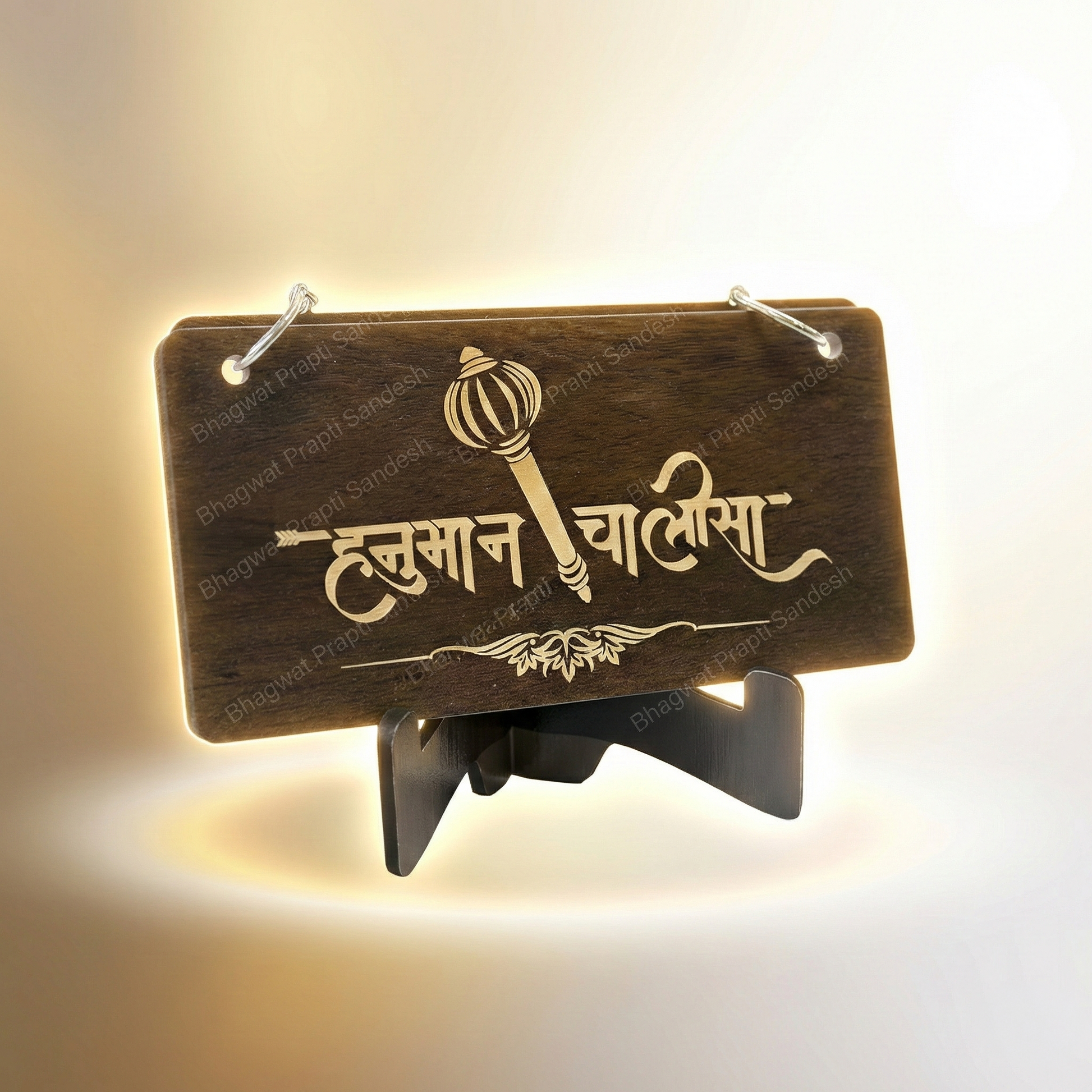Bring the boundless strength and blessings of Shri Hanuman Ji into your home, office, and heart with this exquisitely crafted Wooden Hanuman Chalisa Decor with Stand by Bhagwat Prapti Sandesh.